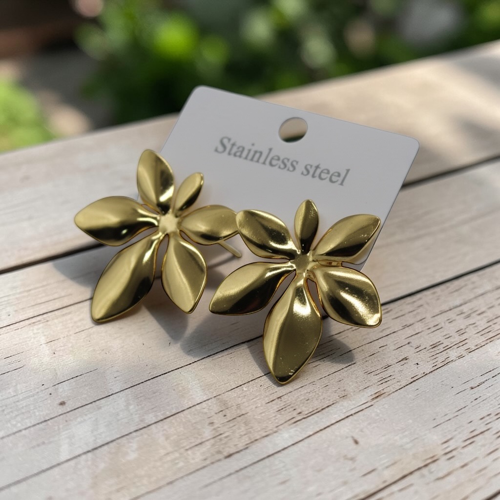 Unlike heavily textured pieces, the mirror-like finish of these earrings reflects light beautifully, making them stand out with a clean, polished look. Their structured floral shape adds volume without heaviness, making them a perfect choice for those who prefer statement pieces with a minimal feel. Designed for versatility, these earrings seamlessly transition from daytime casual looks to evening outfits, making them a must-have staple in your accessory collection. Built with a durable base and coated with a premium anti-tarnish finish, these earrings are resistant to fading and maintain their shine even with regular use.
