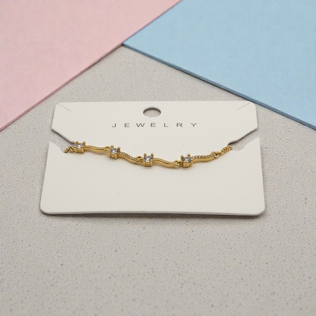 Add a subtle touch of elegance to your everyday look with this beautifully crafted Gold Crystal Curve Bracelet. Designed with a sleek curved bar structure and delicate crystal accents, this bracelet offers a perfect blend of minimalism and sophistication.