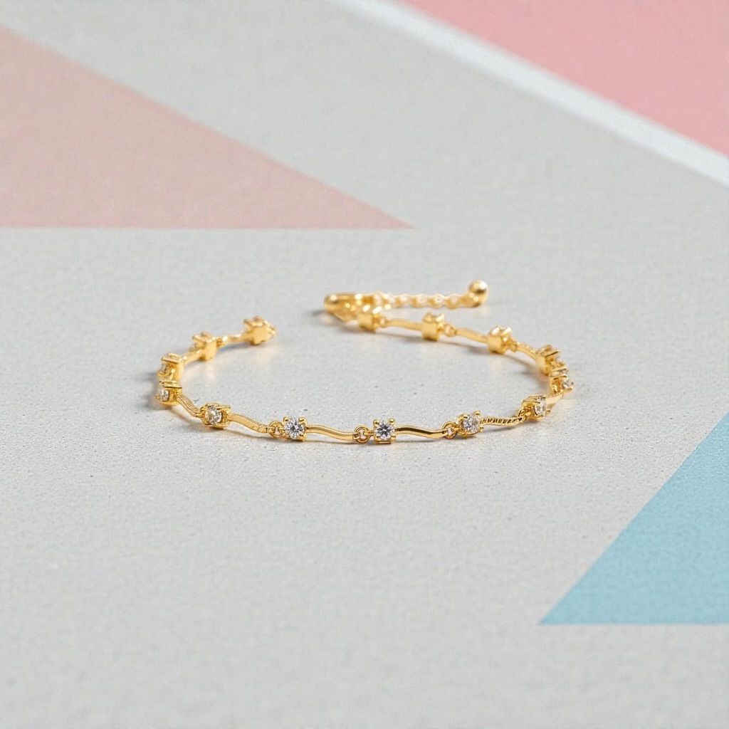 The fine detailing and soft curves create a graceful silhouette that enhances your wrist without overpowering your outfit. Its versatile design makes it ideal for both daily wear and special occasions, effortlessly complementing both casual and formal styles. Crafted with a premium gold-tone finish, this bracelet features an anti-tarnish coating, ensuring long-lasting shine and durability. The lightweight design and adjustable closure provide a comfortable fit for all wrist sizes. This bracelet is perfect for layering or wearing alone for a refined, minimal statement.
