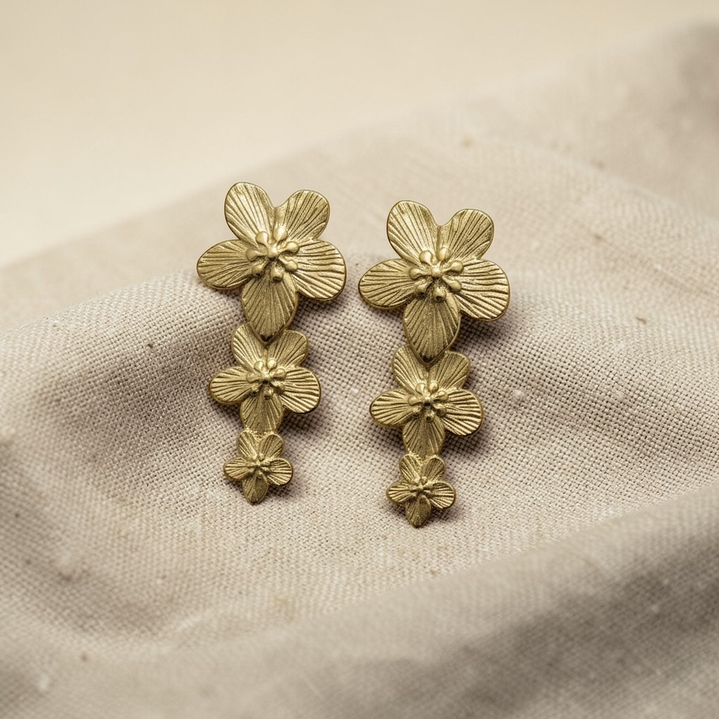 Step into effortless elegance with these beautifully crafted Gold Layered Floral Drop Earrings, designed to capture the charm of blooming florals in a graceful cascading form. Featuring multiple intricately detailed flower motifs arranged vertically, these earrings create a soft, feminine silhouette that enhances any outfit.