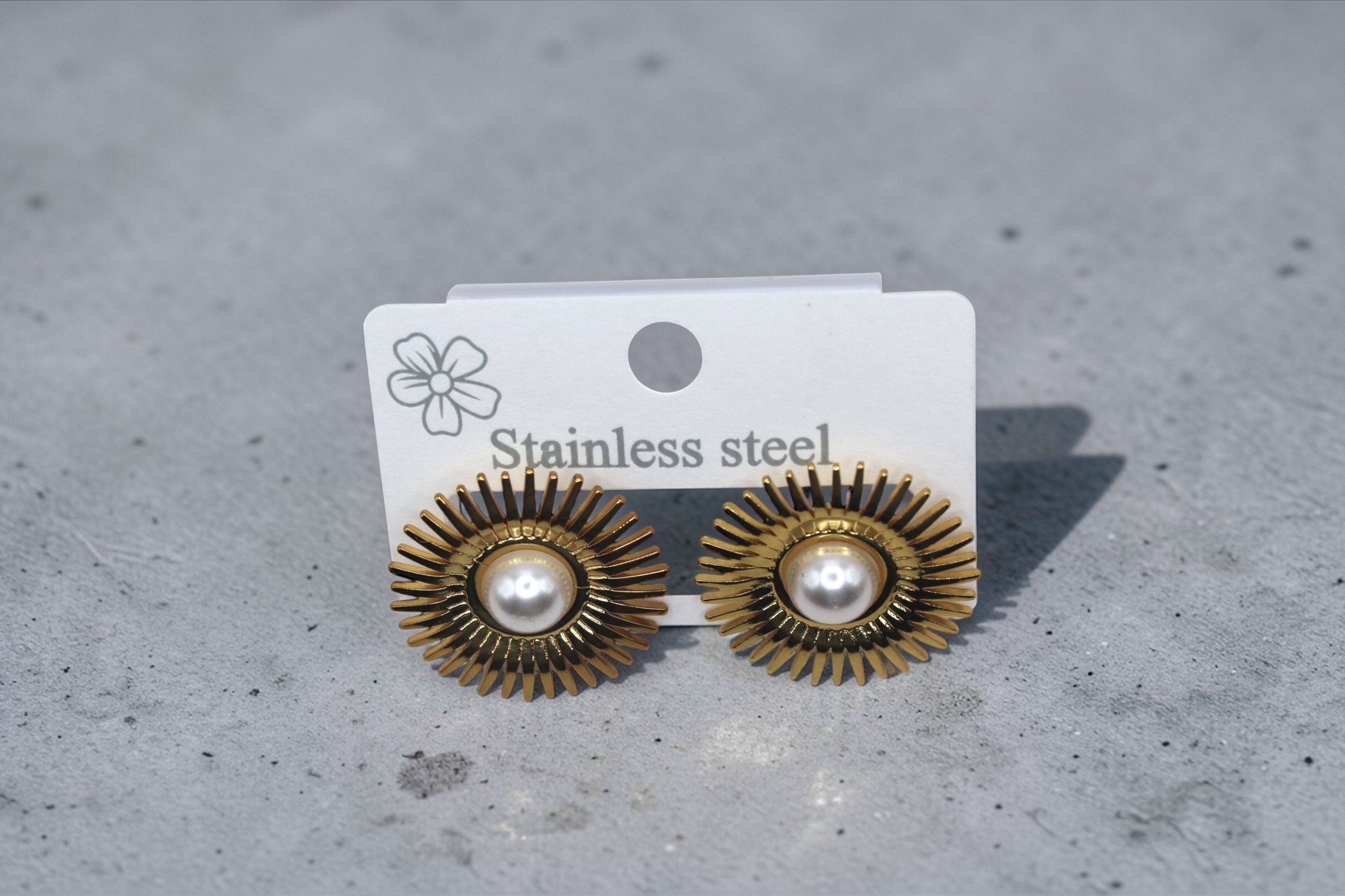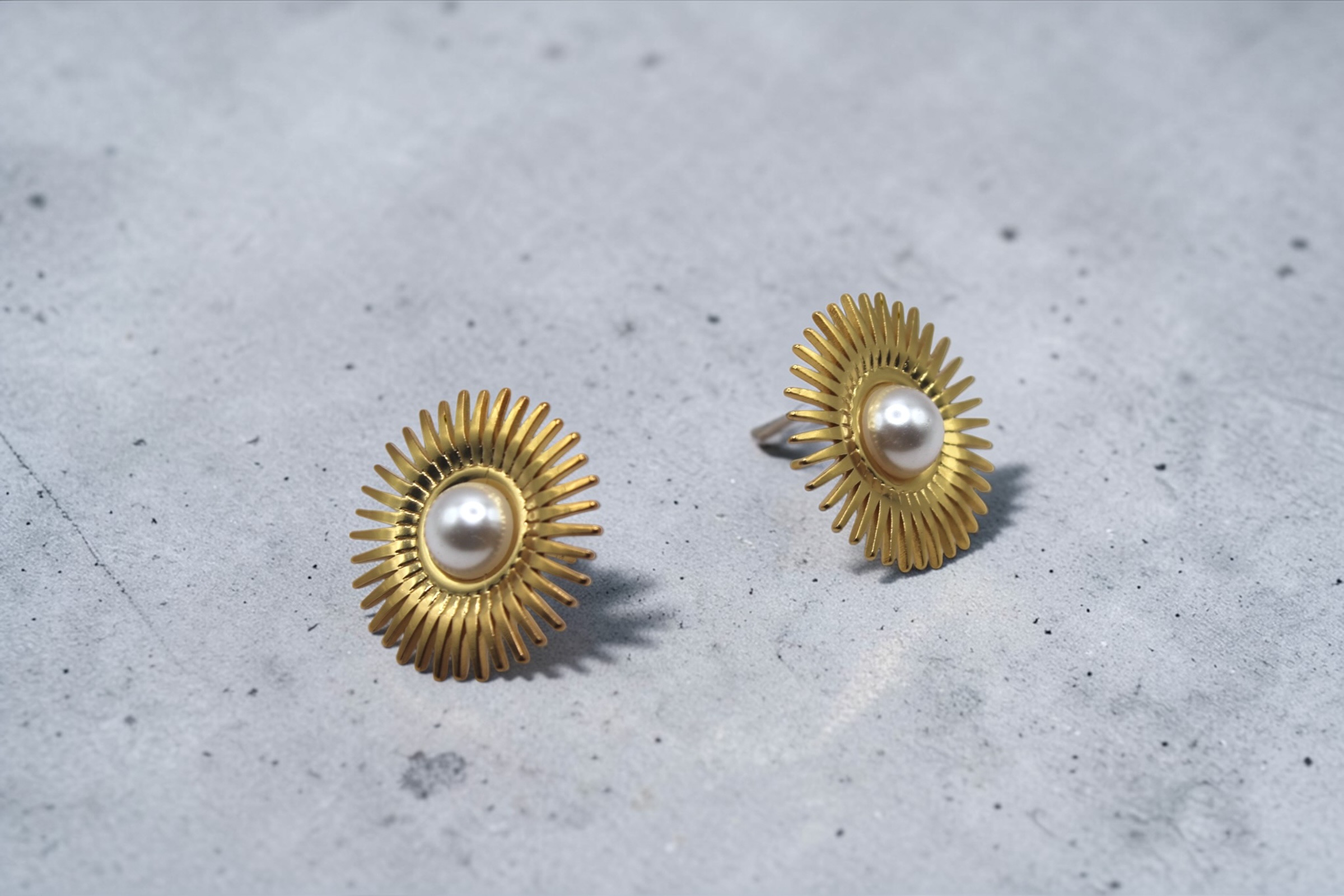 The intricate sunburst detailing creates a striking visual effect, while the pearl centerpiece adds a soft and sophisticated charm. These earrings are ideal for elevating both everyday outfits and festive looks, making them a versatile addition to your collection. Crafted with a premium anti-tarnish coating, these earrings are built to maintain their shine and durability over time. Lightweight yet eye-catching, they offer comfort without compromising on style.