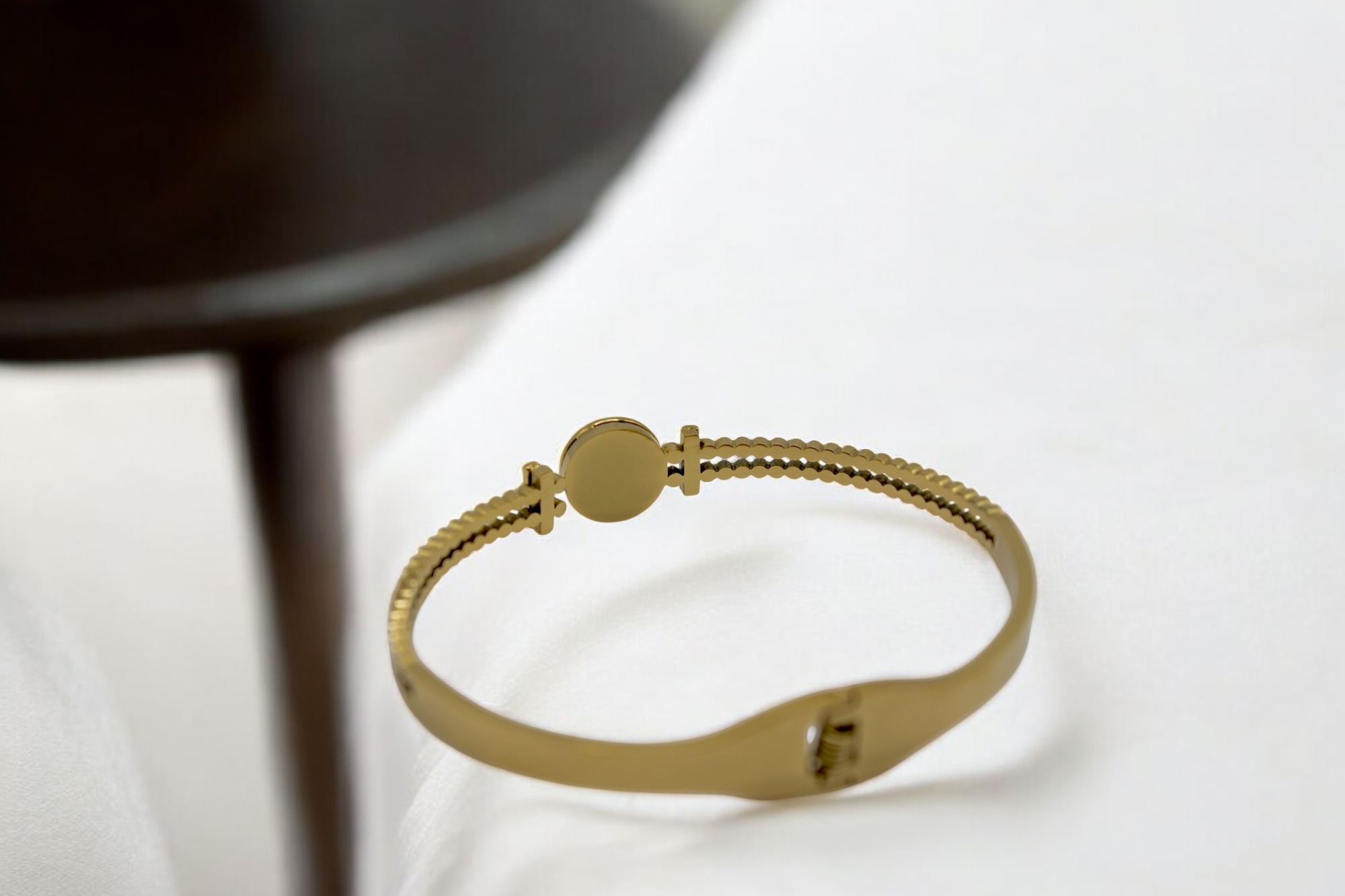 Elegant and timeless, this Round Bracelet features a sleek and minimalist circular design that symbolizes unity and eternity. Crafted from high-quality materials such as sterling silver, gold plating, or stainless steel, it offers a sophisticated and versatile look suitable for any occasion. Whether worn alone for a subtle statement or stacked with other bracelets, this piece adds a touch of effortless elegance to your jewelry collection.