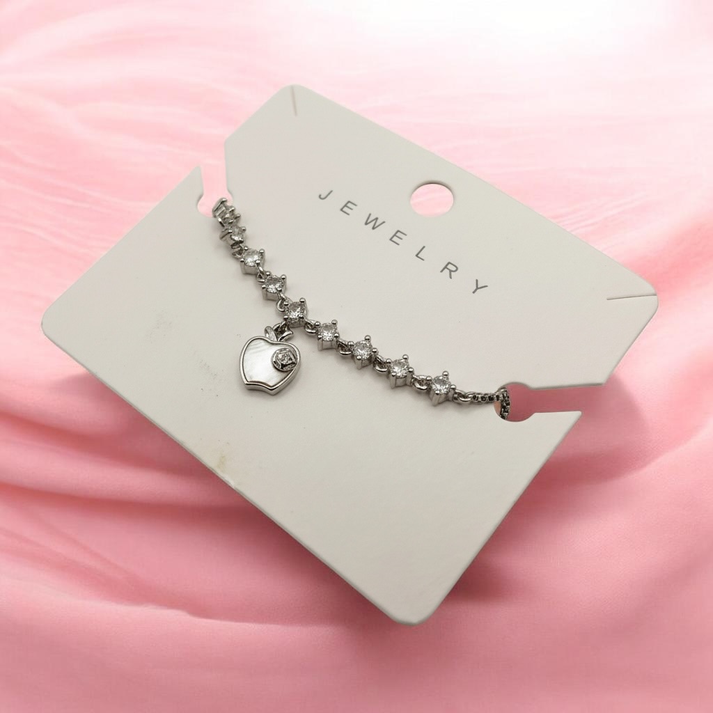 The fine crystal detailing reflects light effortlessly, giving your wrist a subtle yet eye-catching shine. The dangling heart charm adds a playful and feminine touch, making this bracelet perfect for both casual outings and special occasions.Crafted with a premium-quality finish, this bracelet is anti-tarnish, ensuring it maintains its shine and durability over time. The adjustable chain closure allows for a secure and comfortable fit, making it suitable for all wrist sizes.Whether worn alone or layered with other pieces, this bracelet is a versatile addition to your jewellery collection.